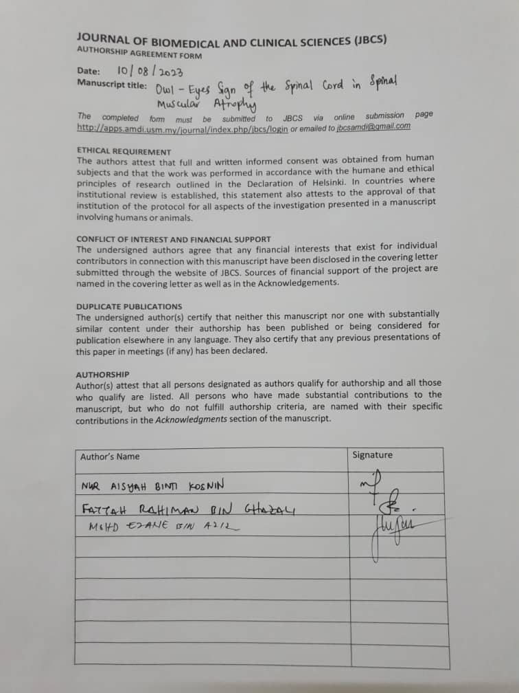 ‘’Owl-eyes’’ sign, magnetic resonance imaging (MRI), scoliosis, spinal muscular atrophyAbstract
